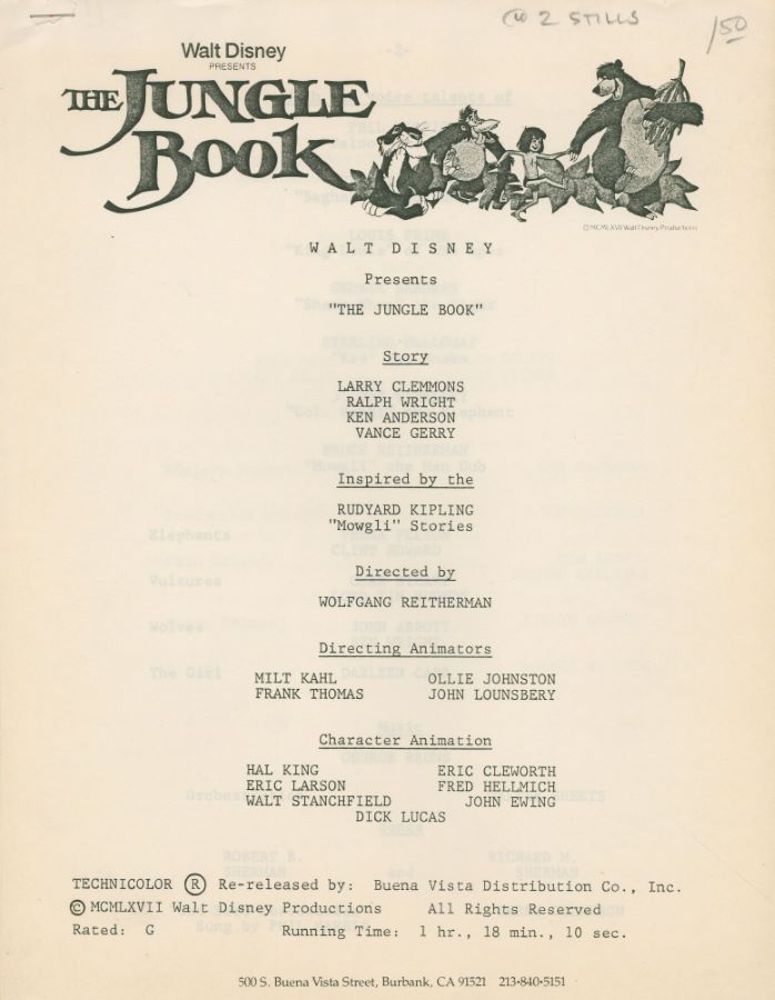 “The Jungle Book” Re-Release Press Releases & Promo Photos (c. 1980s) - ID: jun24052 Walt Disney